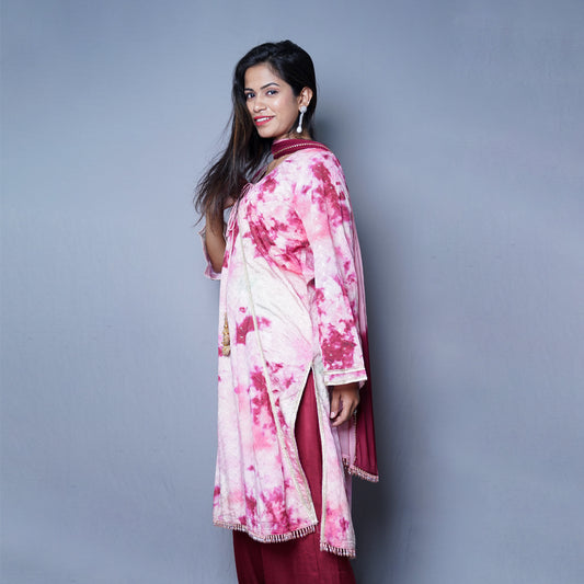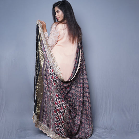 Pure Modal Silk With Ajrakh Bandhani Dupatta