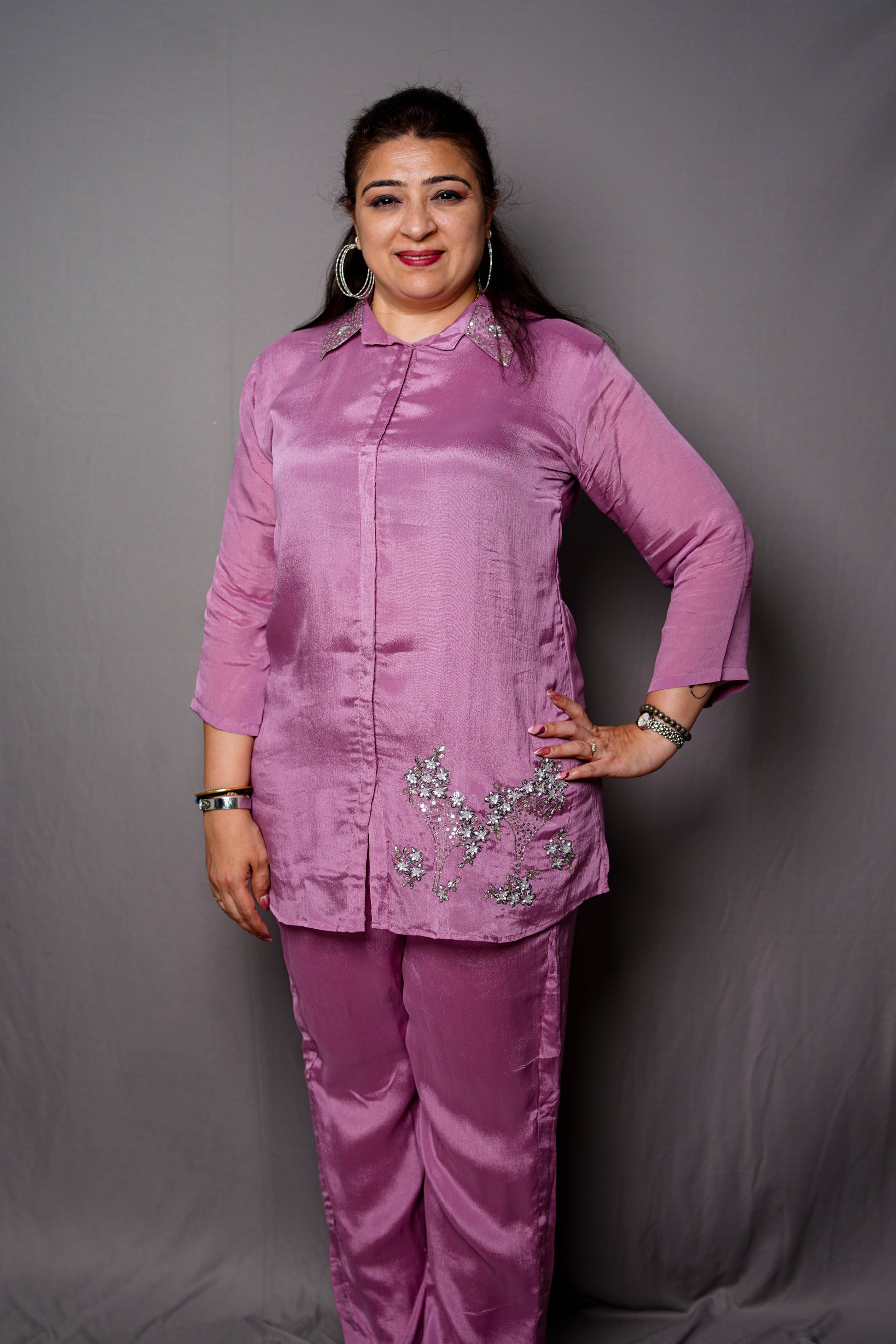 Step into timeless elegance with the Lavender Luxe Silk Cord Set, designed to make you glow with effortless charm. This soft lavender ensemble is crafted from a lustrous silk-blend fabric that drapes gracefully, adding a subtle sheen to your wardrobe.