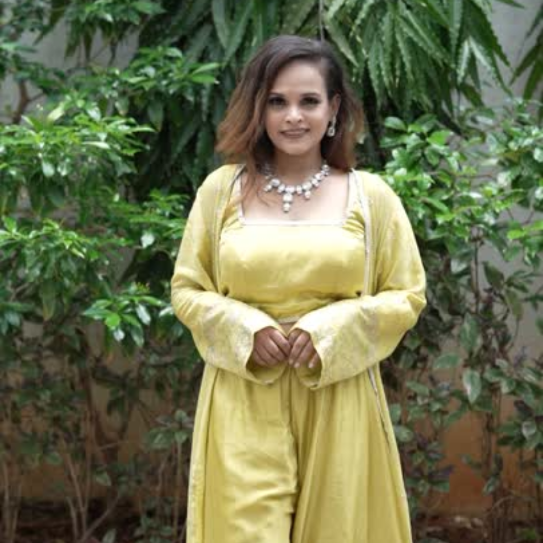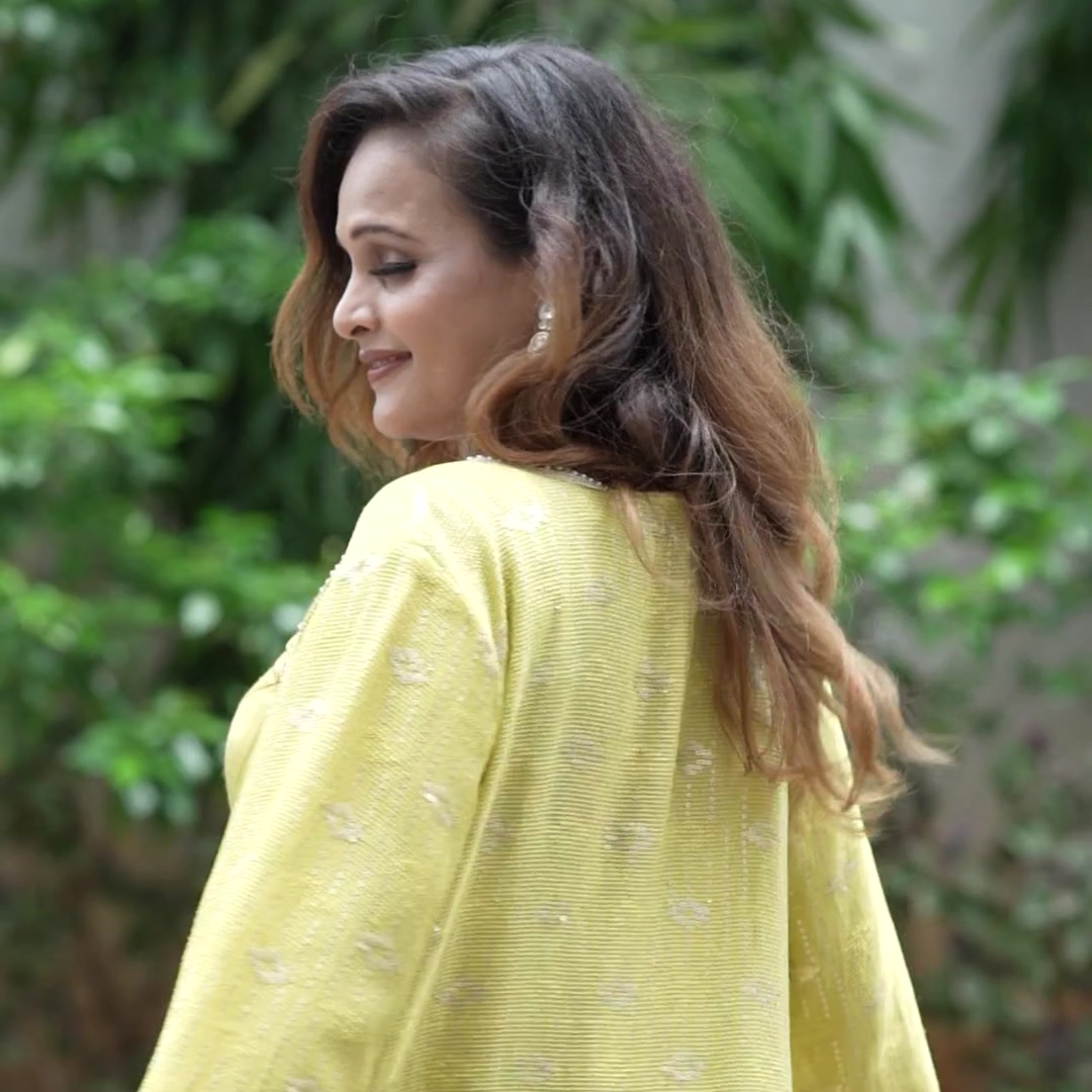 Neon with modal silk top with pearl lacing with full flare plazzo with beautiful sequence jacket